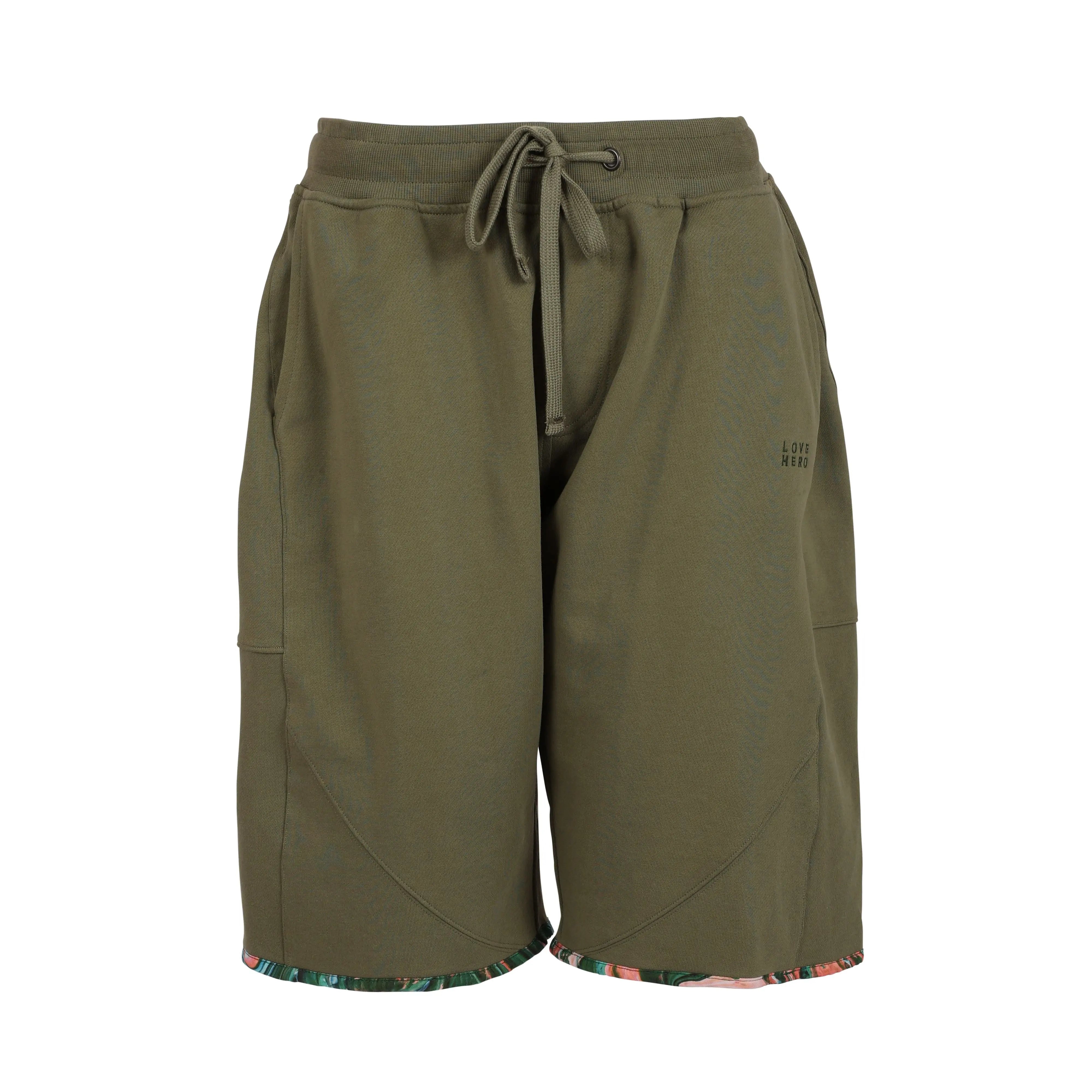 Upcycled - Jogger Shorts in Moss Green with Paint Stroke