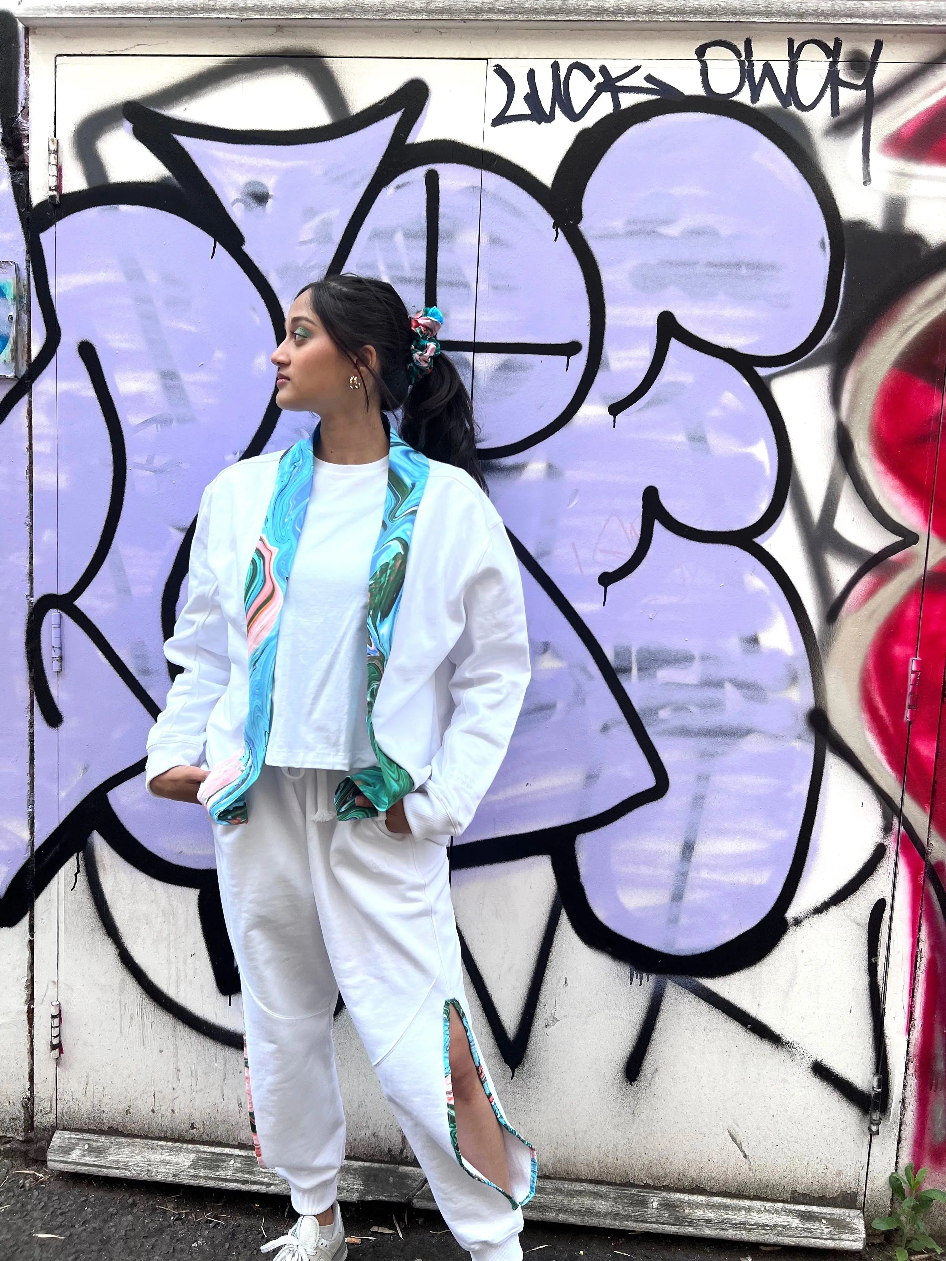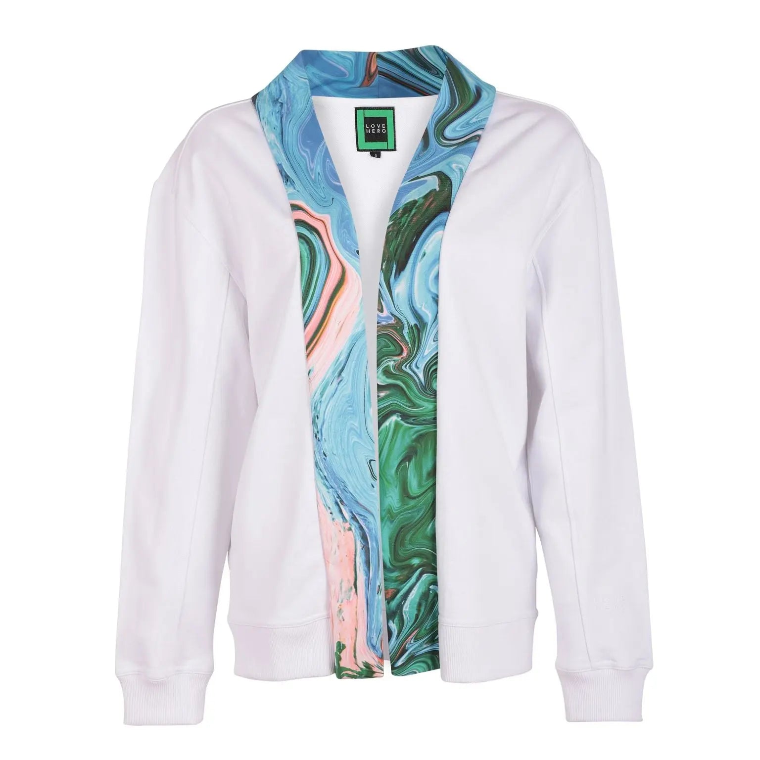 Upcycled - Sweatshirt Cardigan in White with Paint Stroke Collar