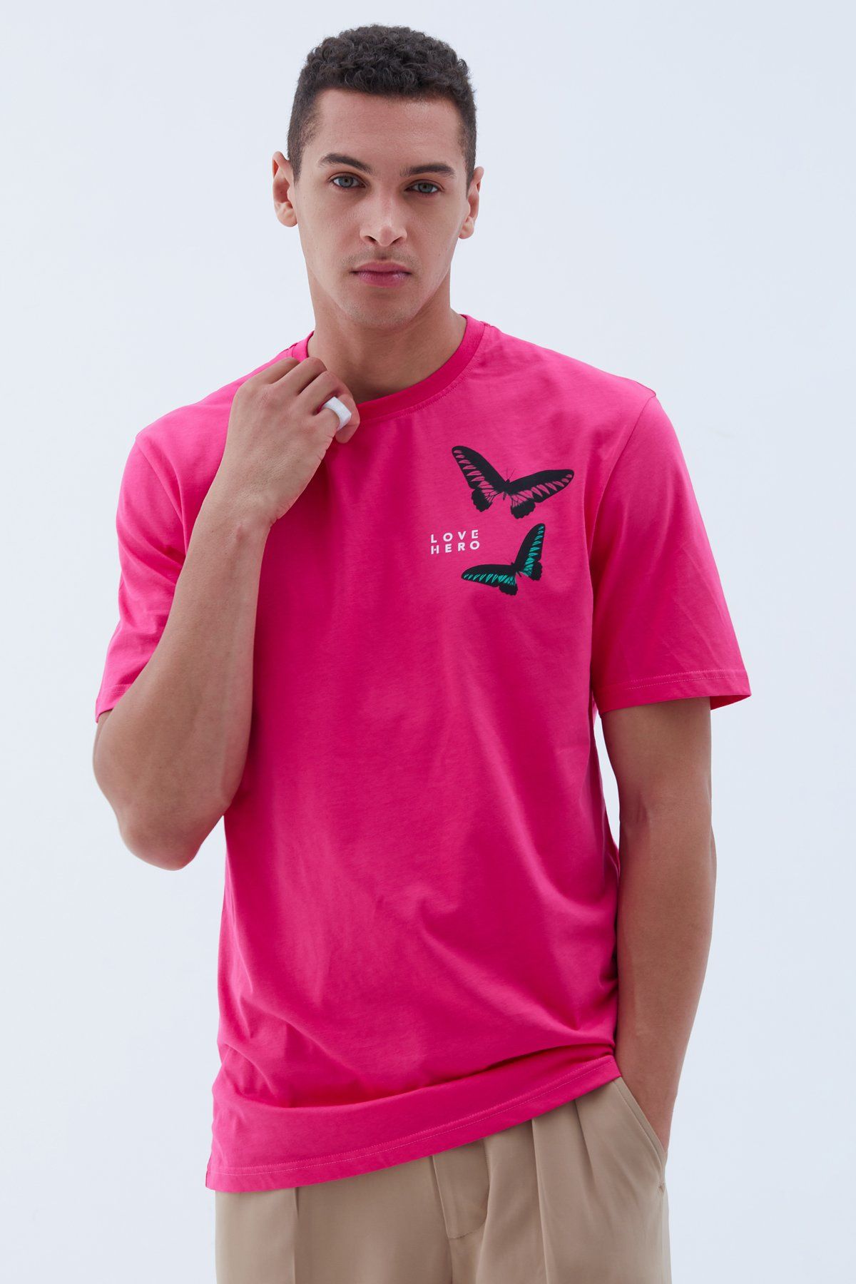 Pair of butterflies printed on the heart and a LOVE HERO logo on the shoulder blade.